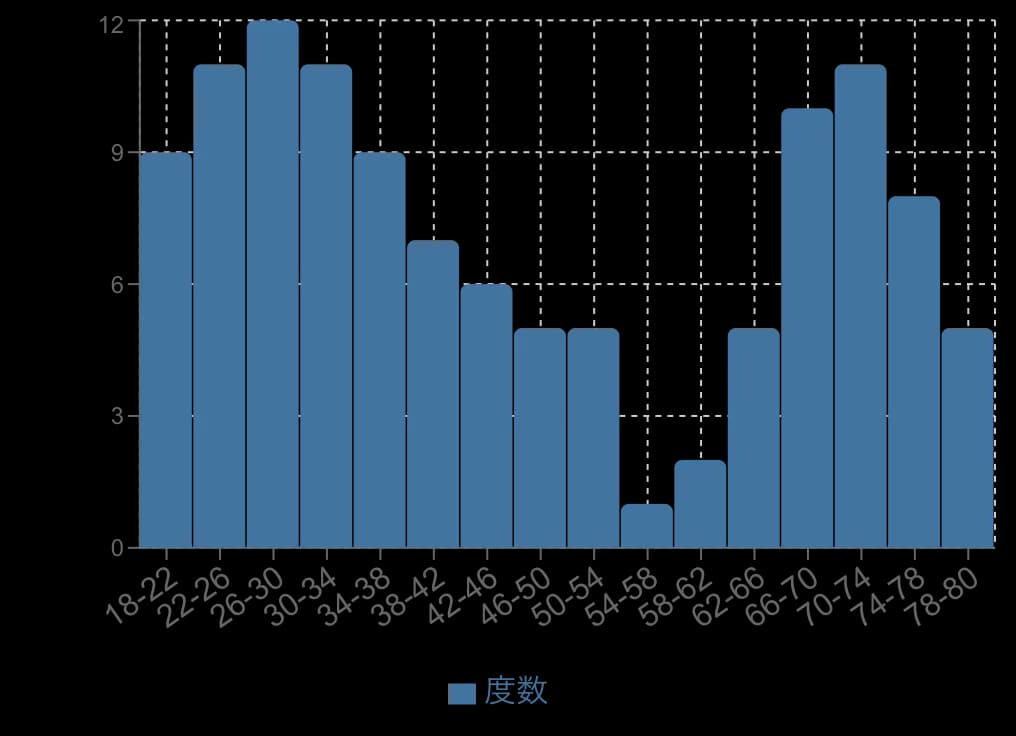 [二峰性が見られるヒストグラムの例]