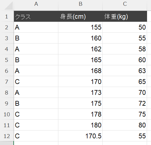 ここでは例として、「Aクラス」と「Bクラス」のデータを色分けする手順を説明します。
