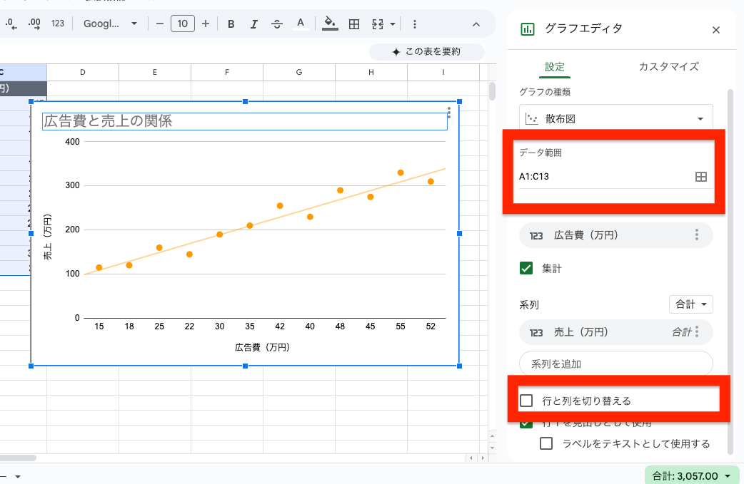 【基本】スプレッドシートで散布図を作成する3ステップ