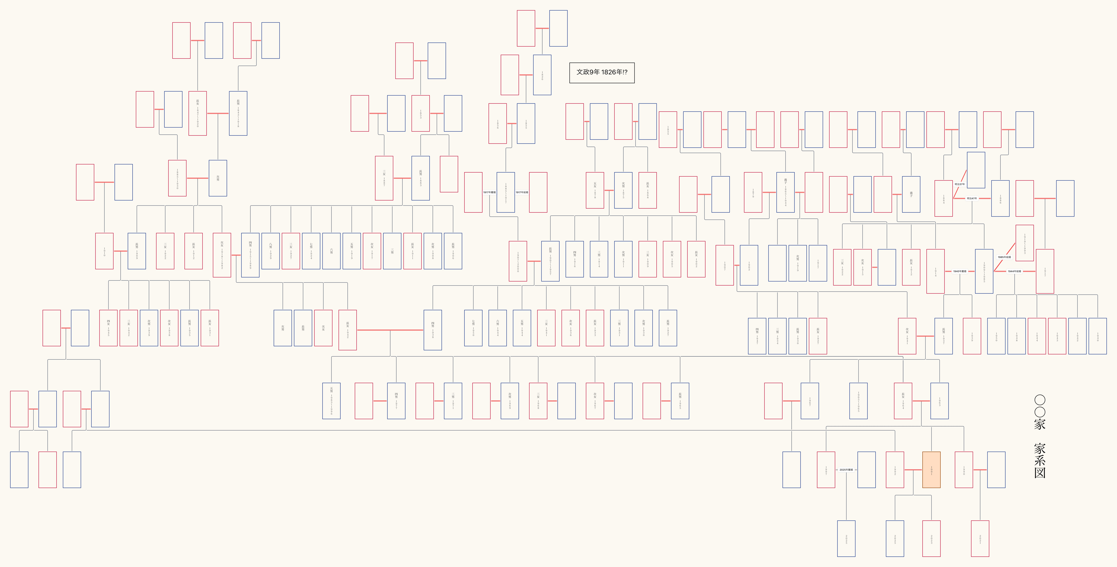 [今回作成した家系図(氏名抜き)]